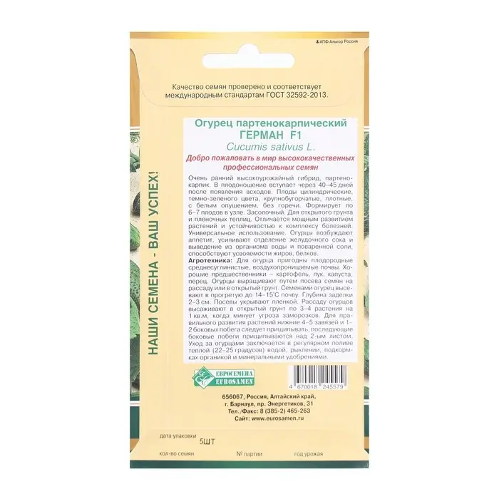 Семена Огурец партенокарпик ГЕРМАН F1, 5 шт