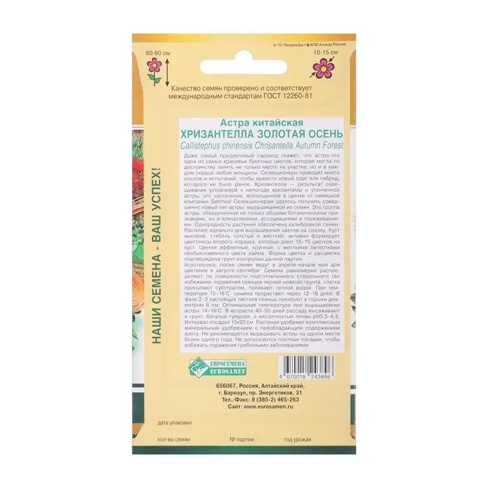 Семена Цветов Астра "Импрессия "0.2 г