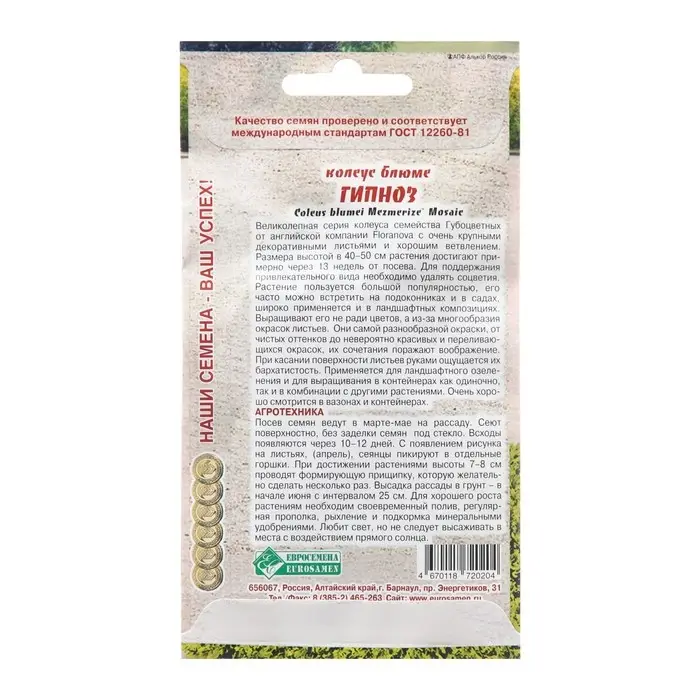 Семена Колеус блюме "Гипноз", 3 шт