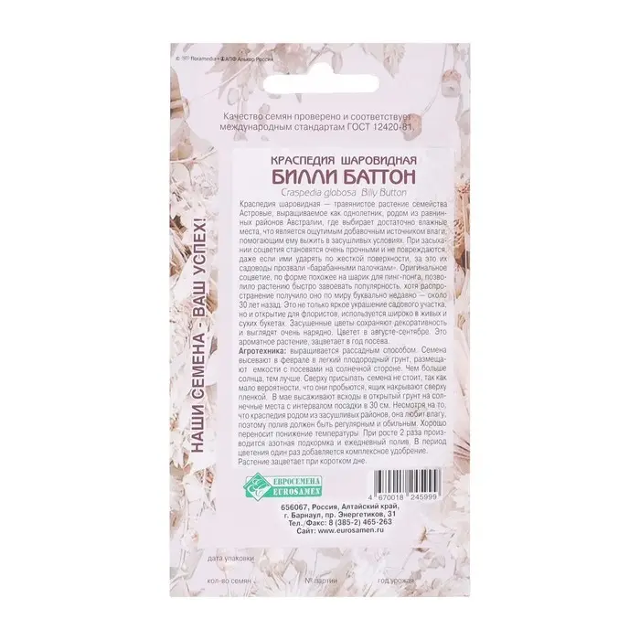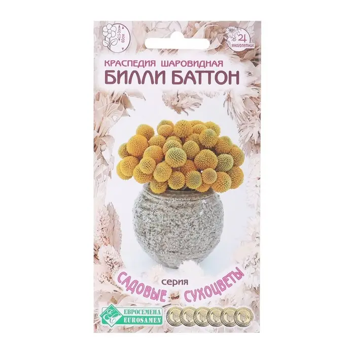 Семена цветов Краспедия шаровидная «Билли Баттон», многолетник, сухоцвет, 0 ,05 г