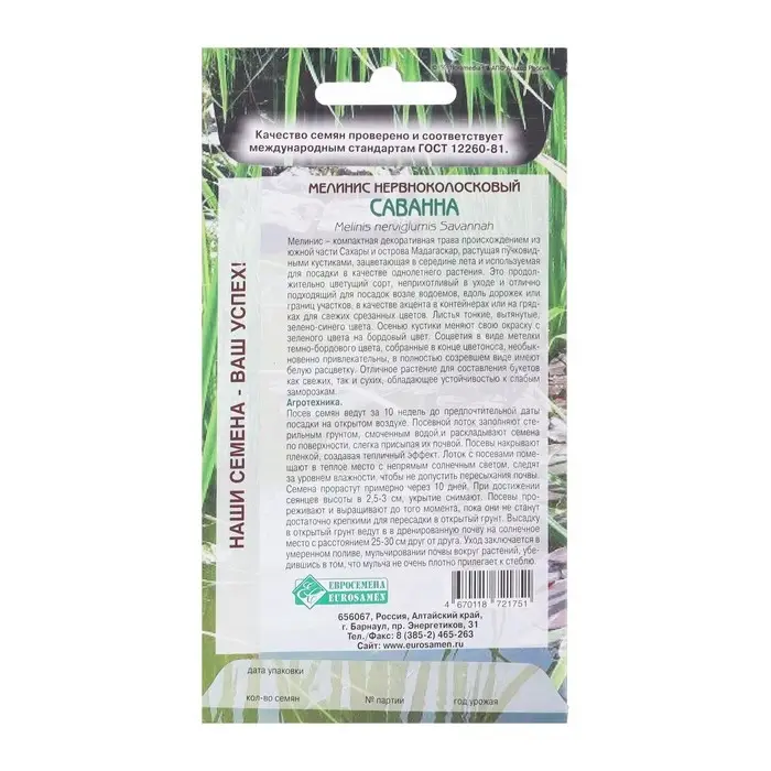 Семена Мелинис нервноколосковый "Саванна", 5 шт
