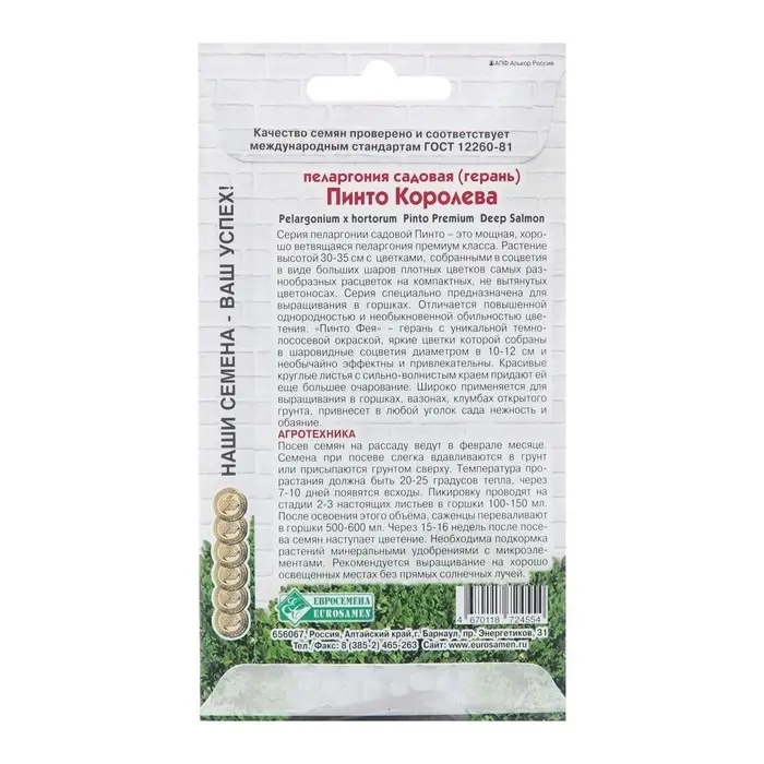 Семена Пеларгония садовая "Пинто Королева", 3 шт