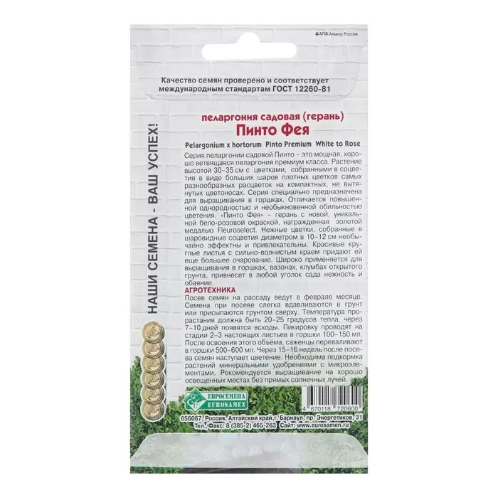 Семена Пеларгония садовая "Пинто Фея", 3 шт