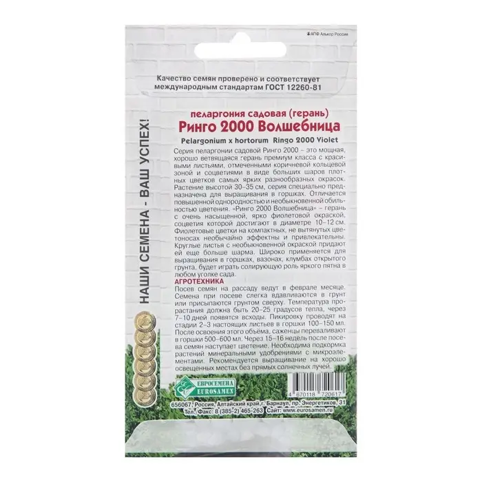 Семена Пеларгония "Волшебница", 3 шт