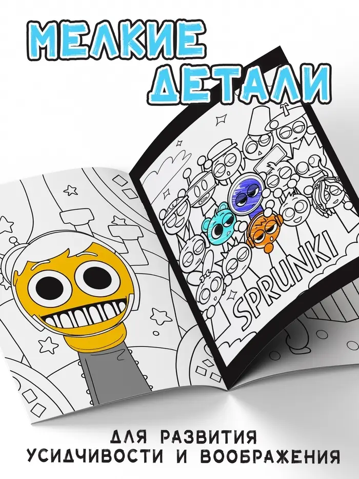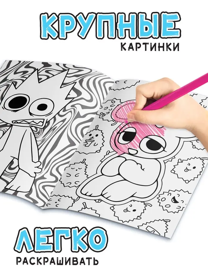 - 24 страницы с изображениями забавных и фантастических персонажей, которые ждут ярких красок.