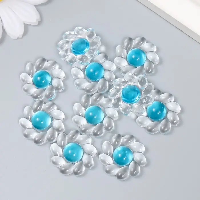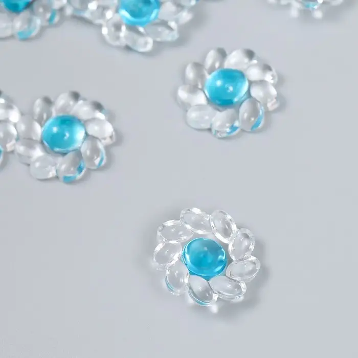 Декор для творчества пластик "Цветок с цветной серединкой" прозрачно-голубой 0,8х2,4х2,4 см 912946