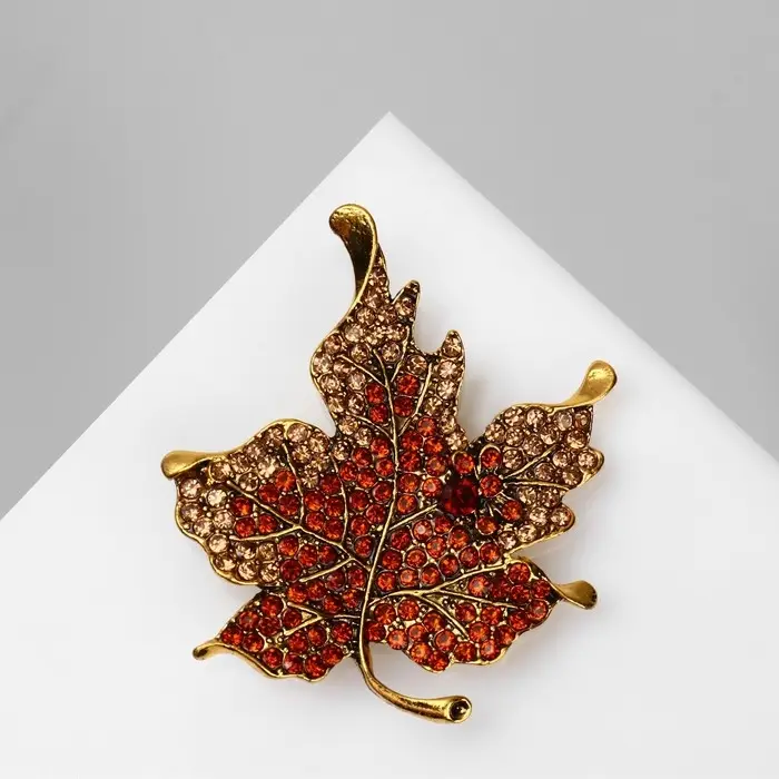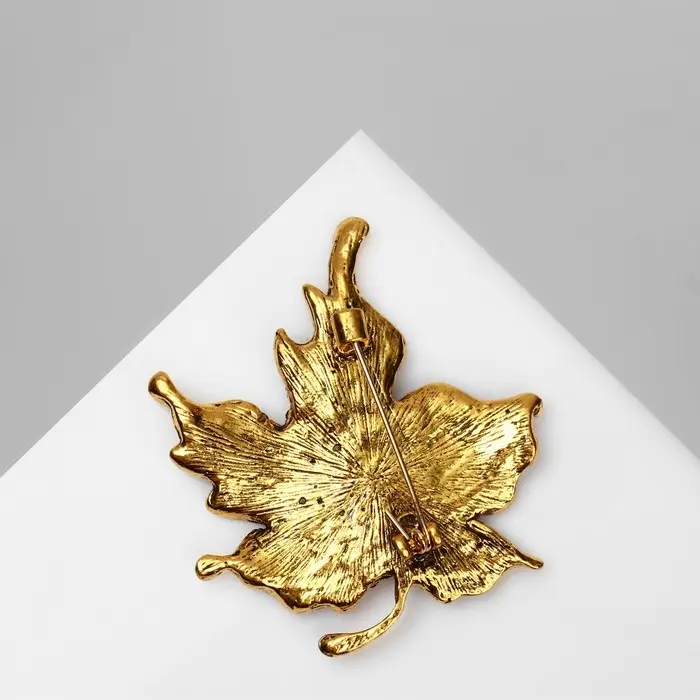 Брошь «Лист» кленовый, цвет коричневый в чернёном золоте