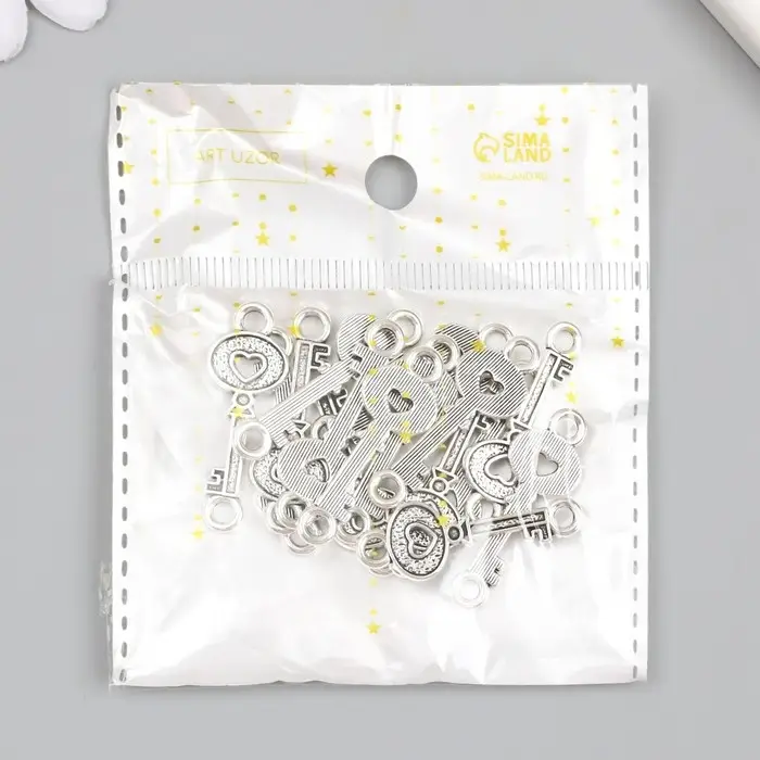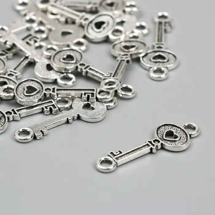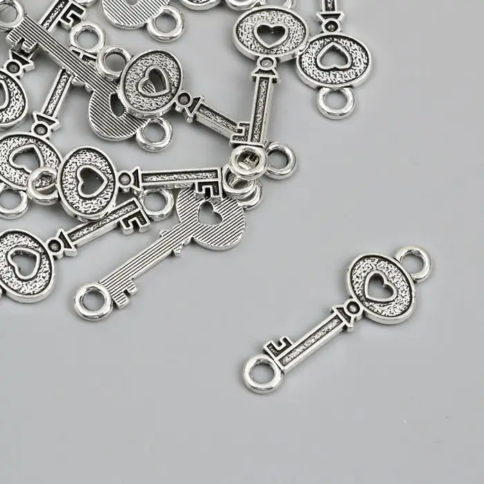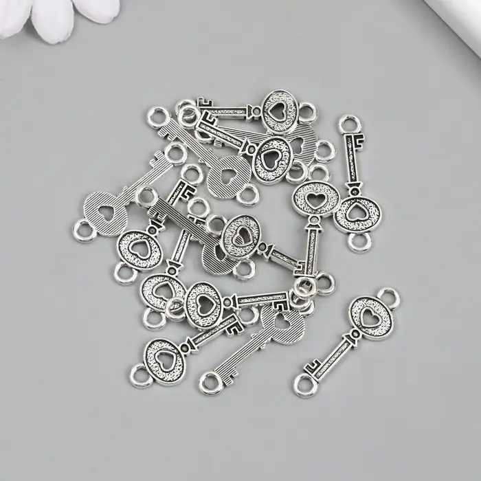 Фурнитура для бижутерии и украшений, коннектор металл 2 ушка «Ключик с сердечком», 3.5×1.2 см