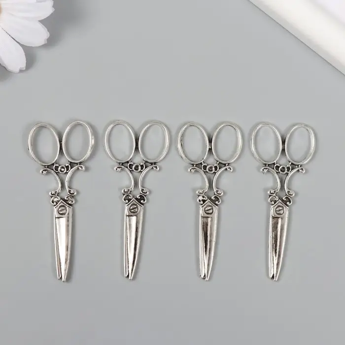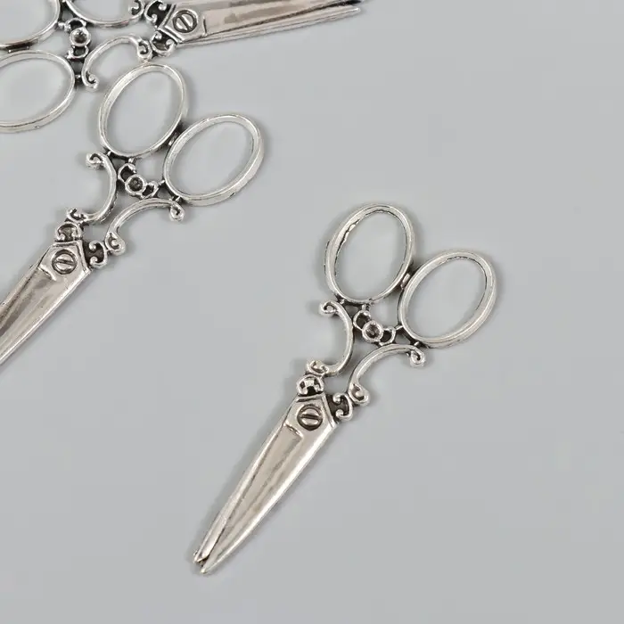 Декор металл для творчества "Ажурные ножницы" серебро (А9361) 6х2,5 см