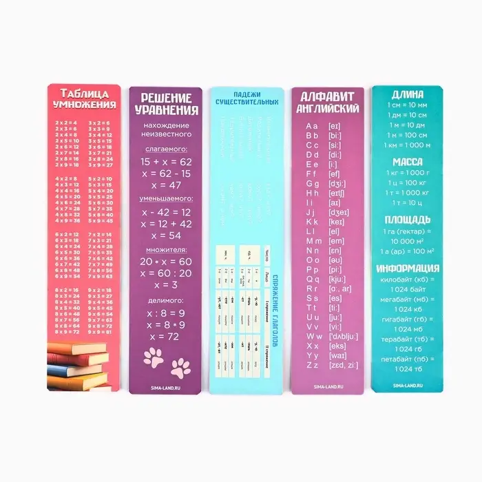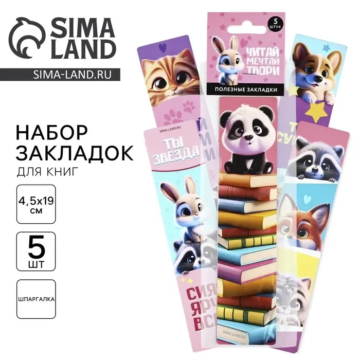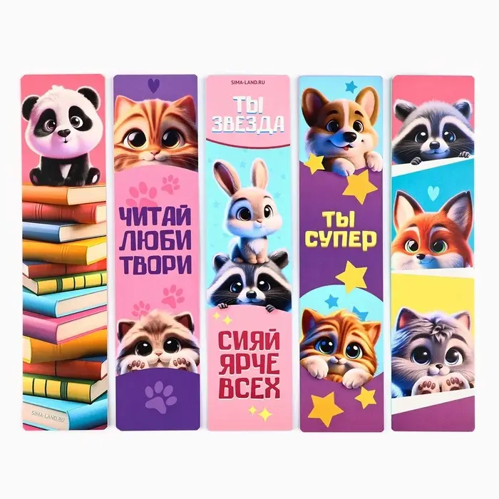 Картонные закладки 5 штук в наборе «Читай, мечтай»