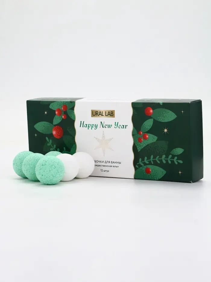 Бомбочки для ванны Happy New Year, аромат рождественская ель, набор 12 шт х 20 г, URAL LAB