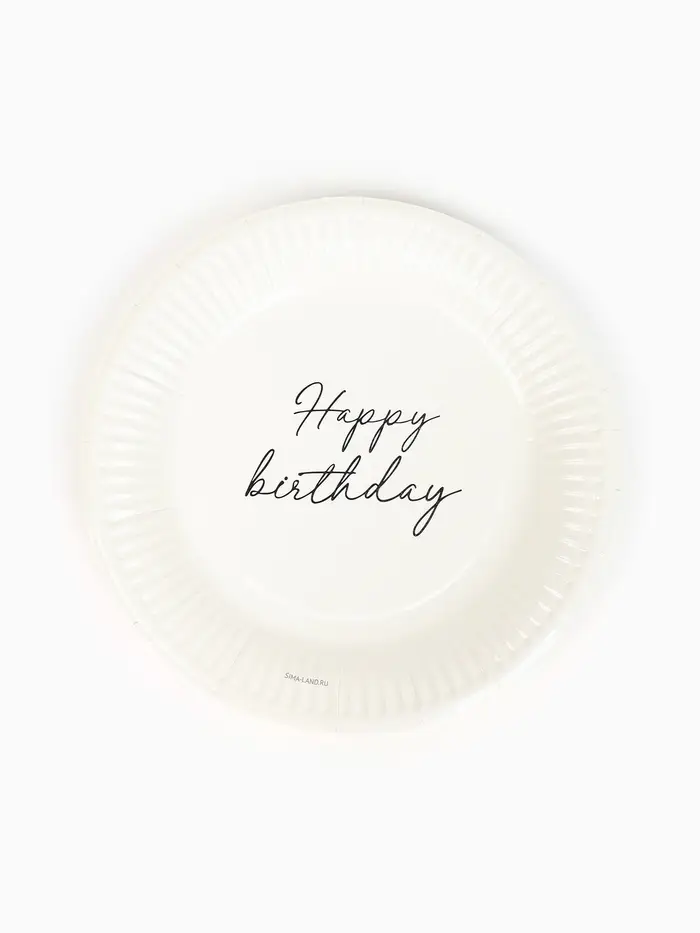 Тарелка одноразовая бумажная «Happy Birthday», белая, 18 см