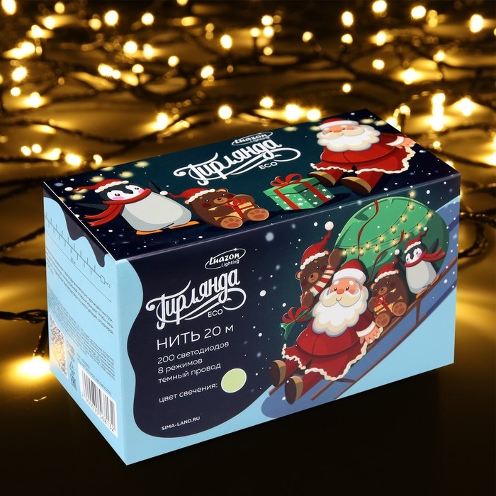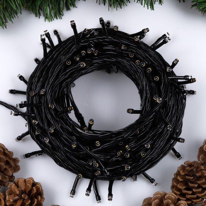 Гирлянда «Нить» 20 м, IP20, тёмная нить, 200 LED, свечение тёплое белое, 8 режимов, 220 В