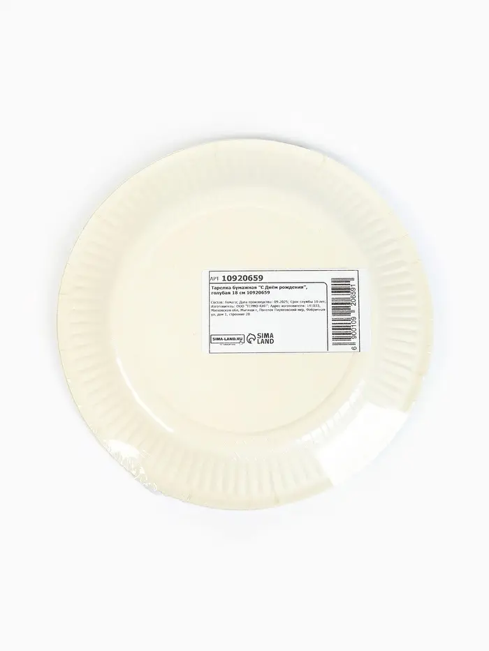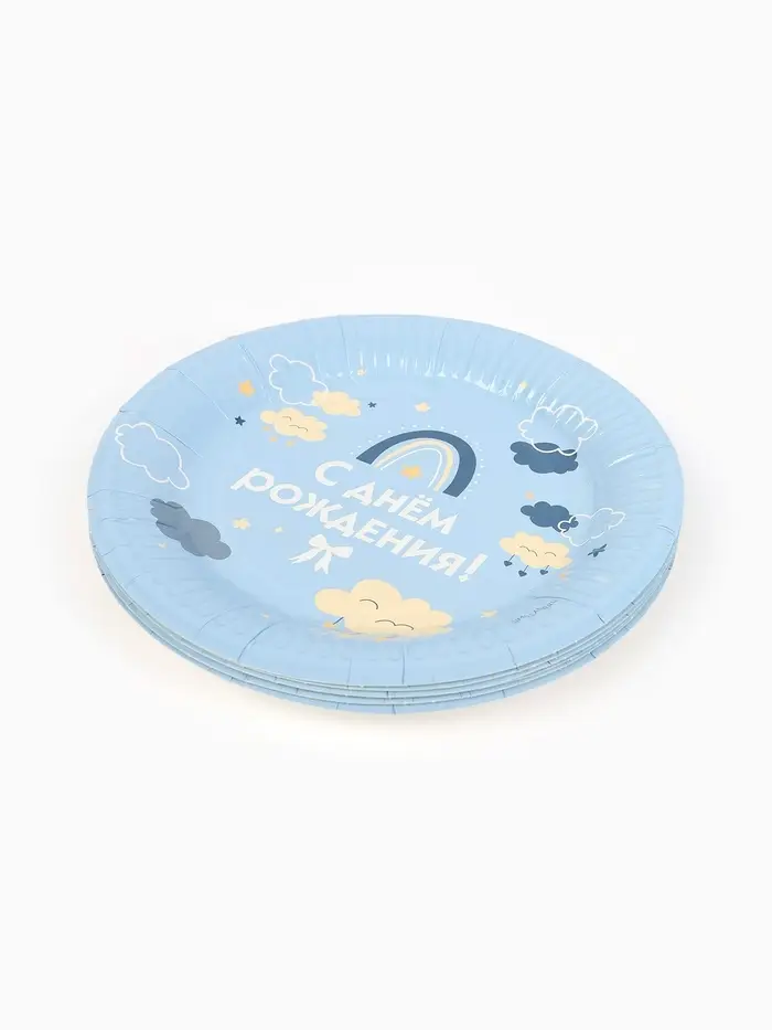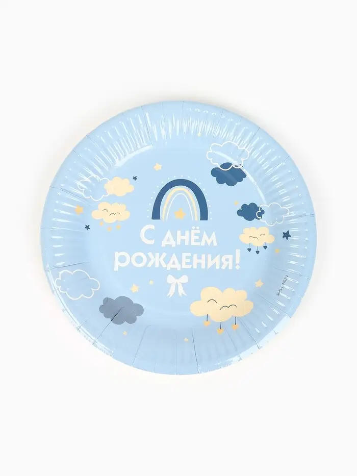 Тарелка одноразовая бумажная «С Днём рождения», голубая, 18 см