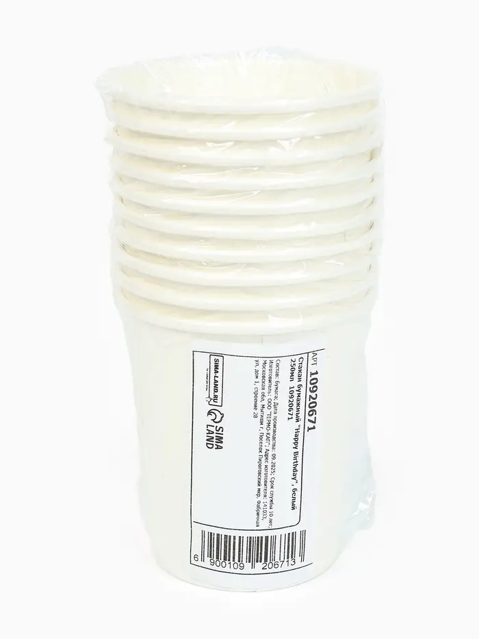 Стакан одноразовый бумажный «Happy Birthday», белый 250 мл