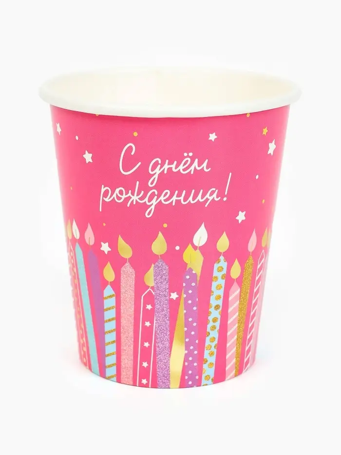 Стакан одноразовый бумажный «С Днём рождения», розовый, 250 мл