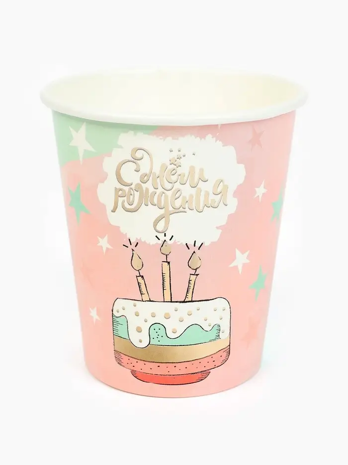 Стакан одноразовый бумажный «С Днём рождения», 250 мл