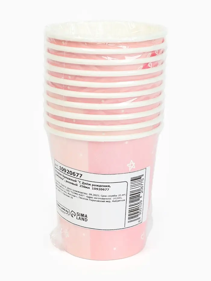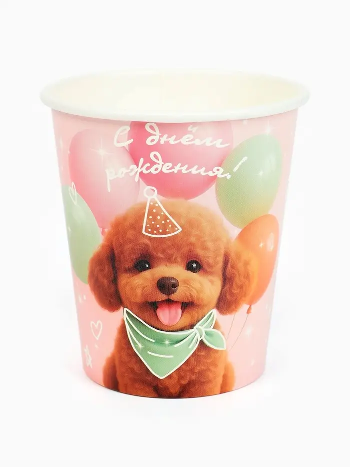 Стакан одноразовый бумажный «С Днём рождения, собачка», розовый, 250 мл
