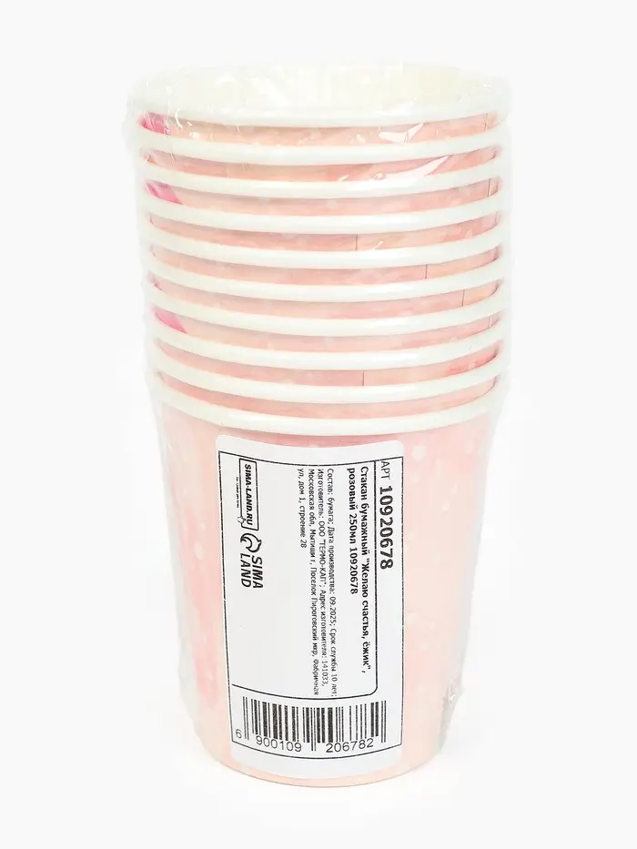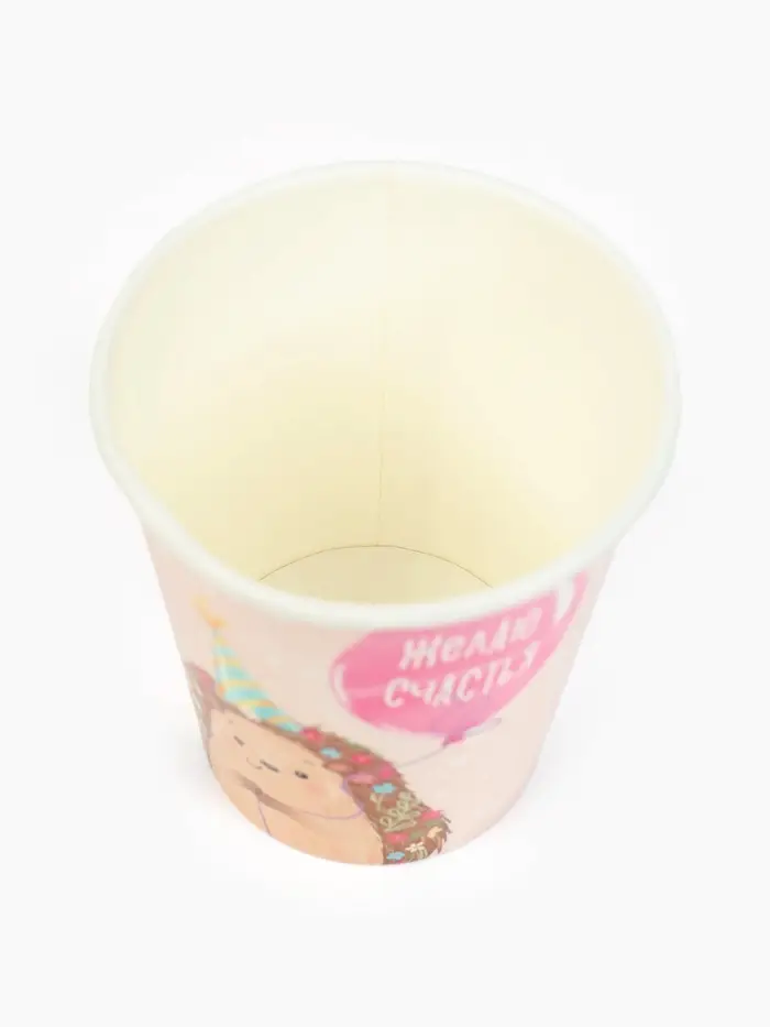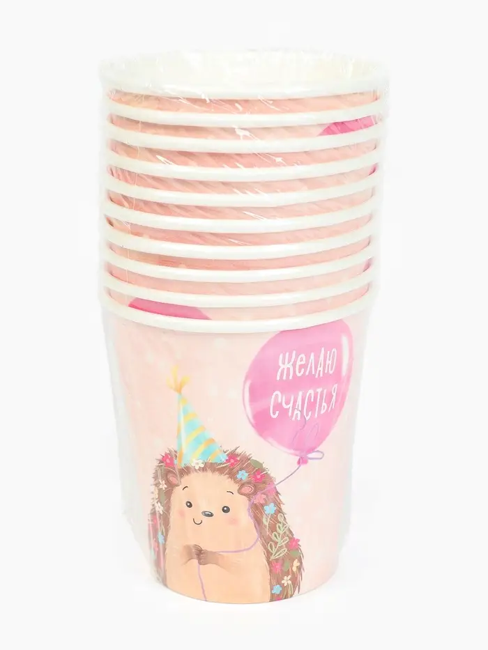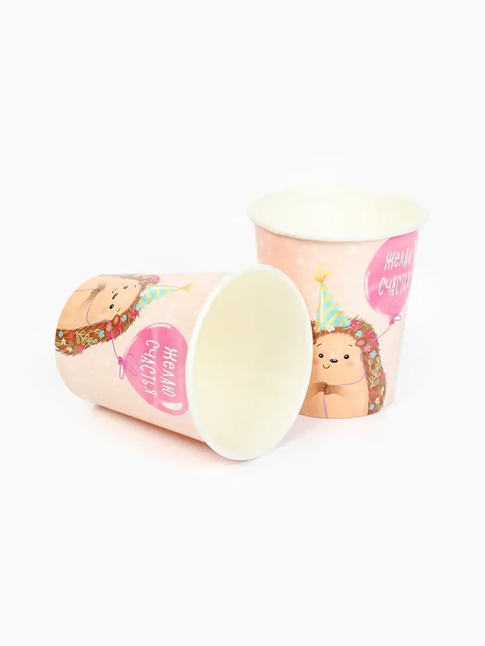 Стакан одноразовый бумажный «Желаю счастья, ёжик», розовый, 250 мл