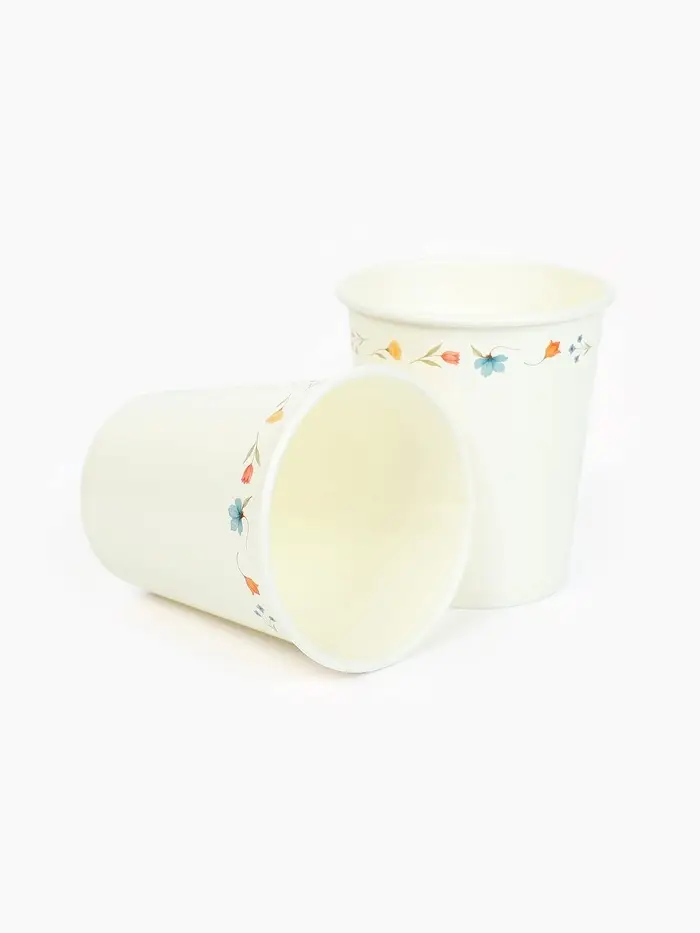 Стакан одноразовый бумажный «Керамика с цветами», белый, 250 мл