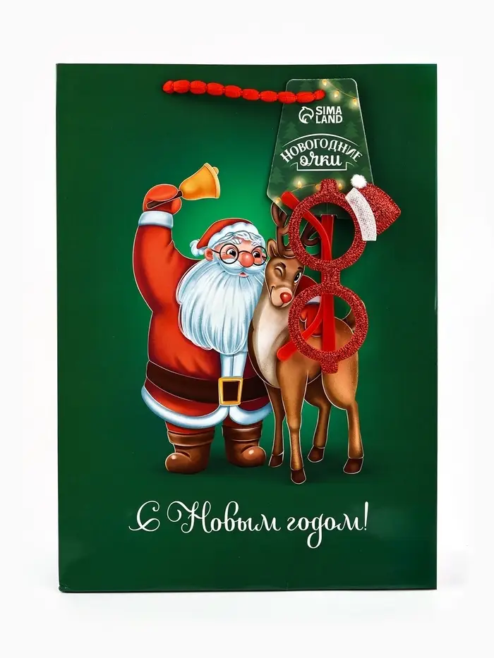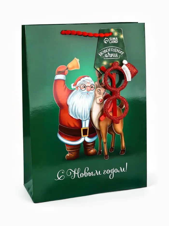 Пакет подарочный «Новогодний», с очками, 31 × 11 × 40 см