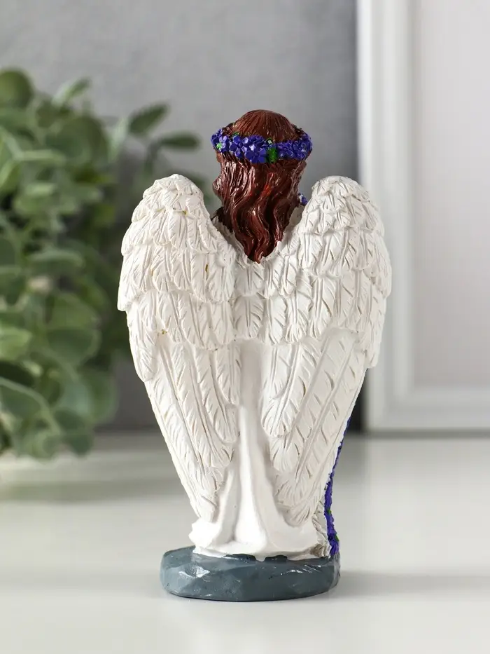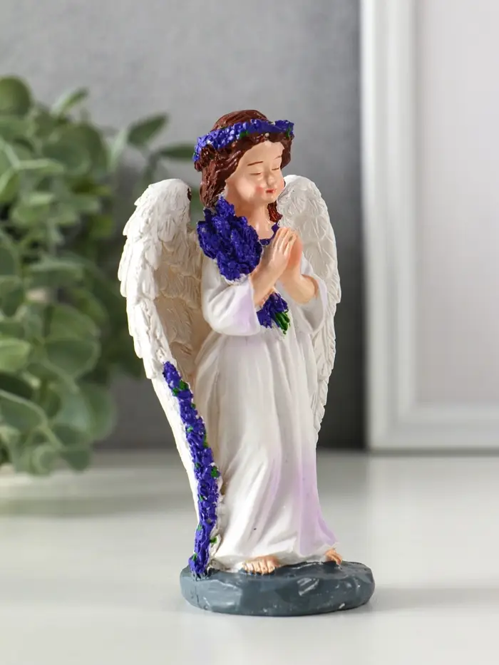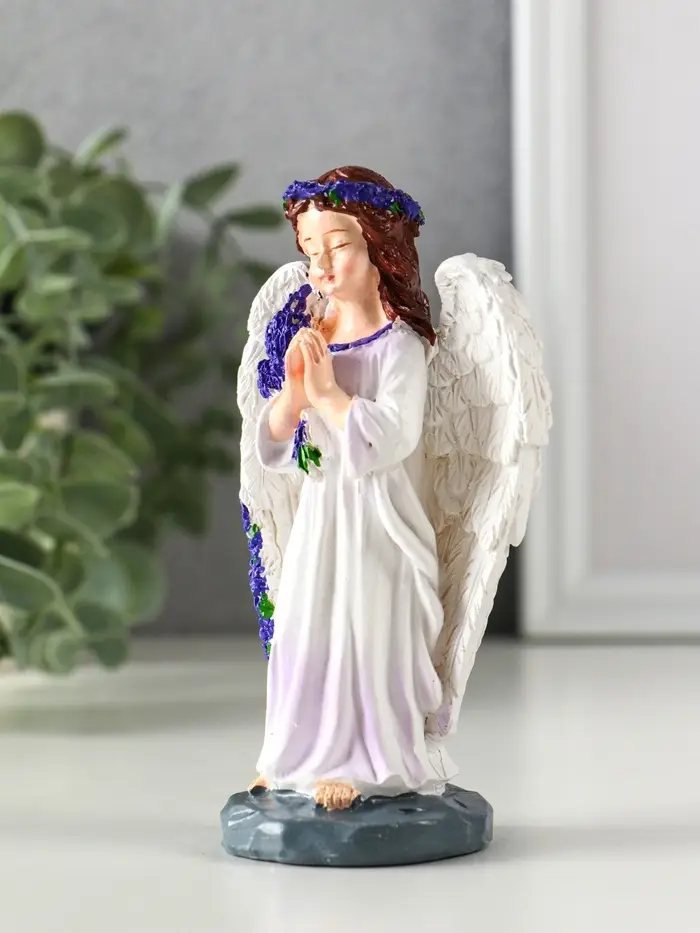 Сувенир полистоун "Девочка-ангел с букетом лаванды - молитва" фиолет 7,7х4х12,5 см