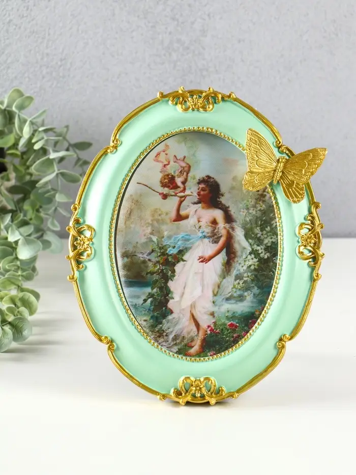 Фоторамка полистоун 13х18 см "Золотая бабочка" бирюза 23х18х2 см