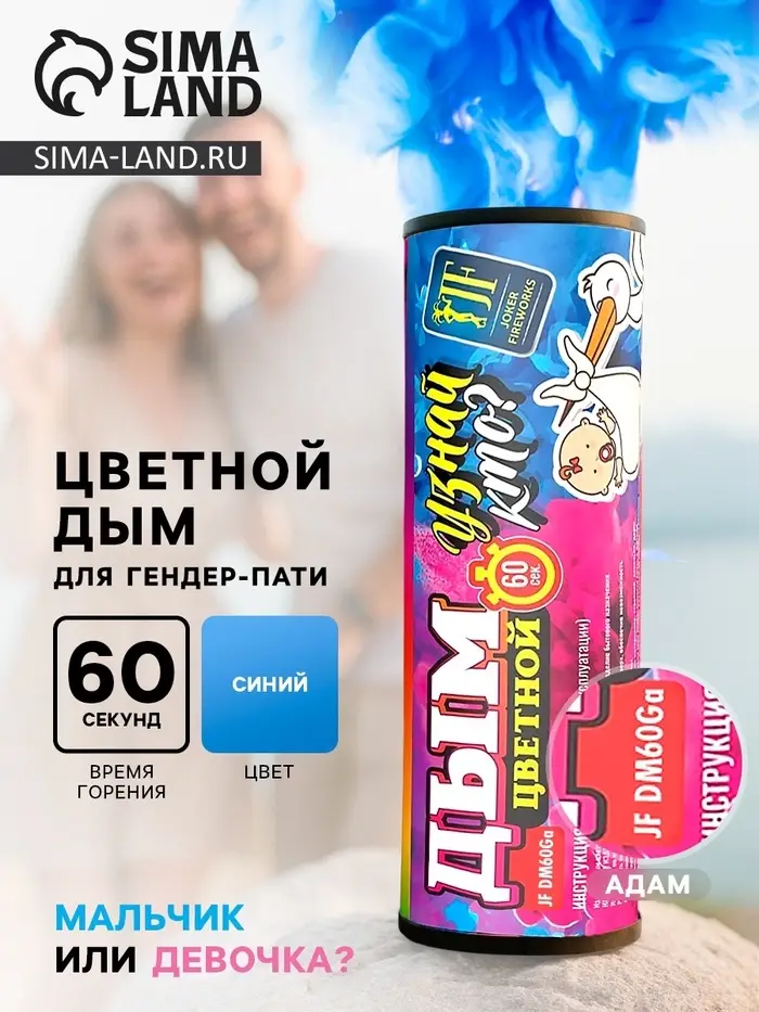 Голубой дым для гендер пати цветной DM60Ga (Адам)
