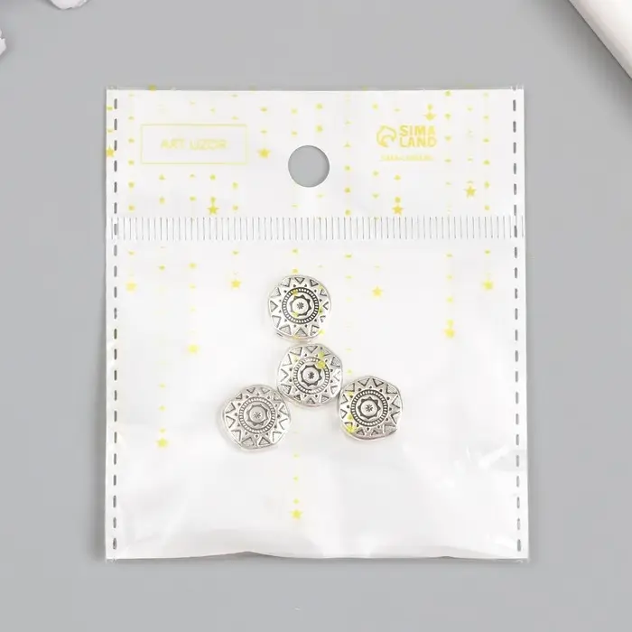 Бусина для творчества металл "Плоский круг. Солнце" 1,2х1,2 см