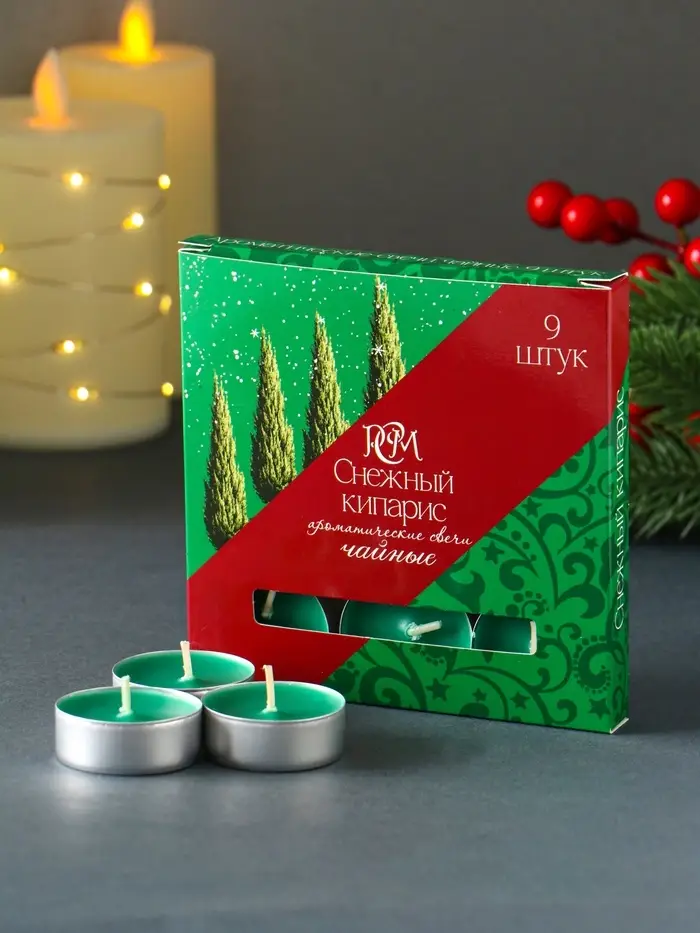 Набор чайных свечей ароматических "Снежный кипарис" 9 штук