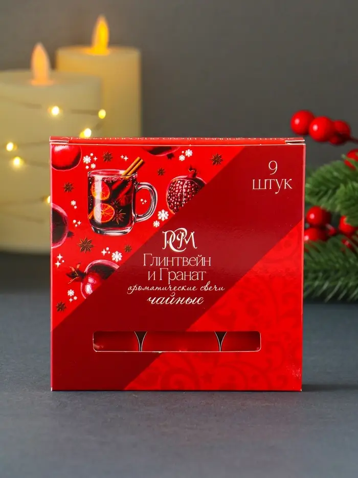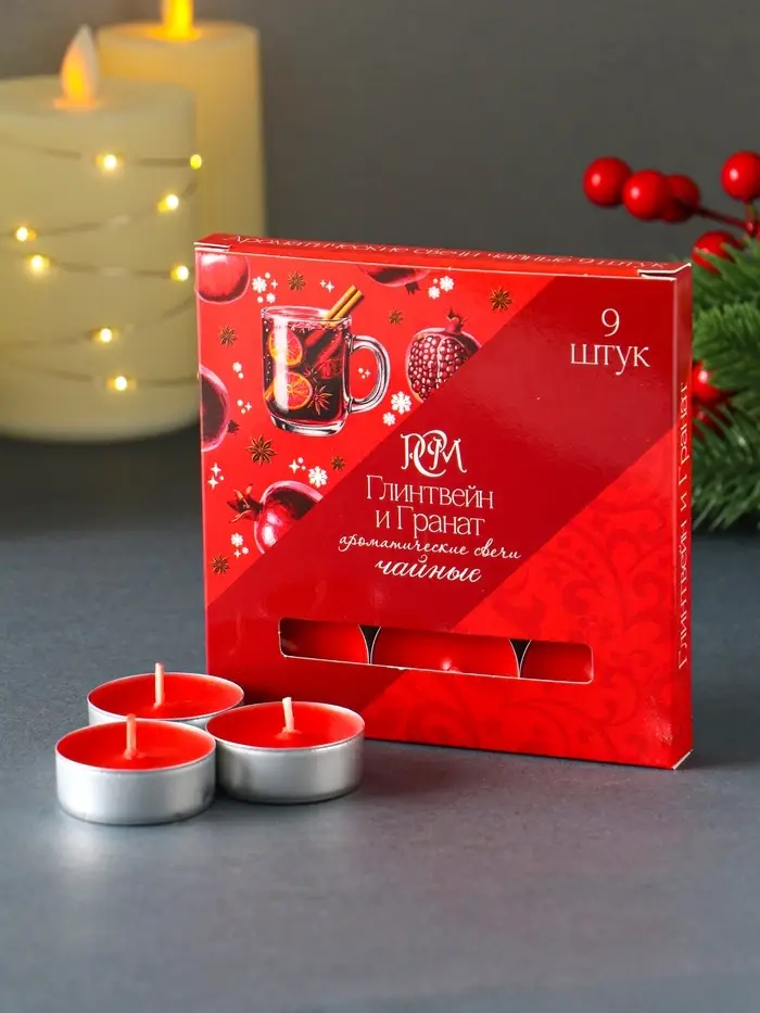 Набор чайных свечей ароматических "Глинтвейн&гранат" 9 штук