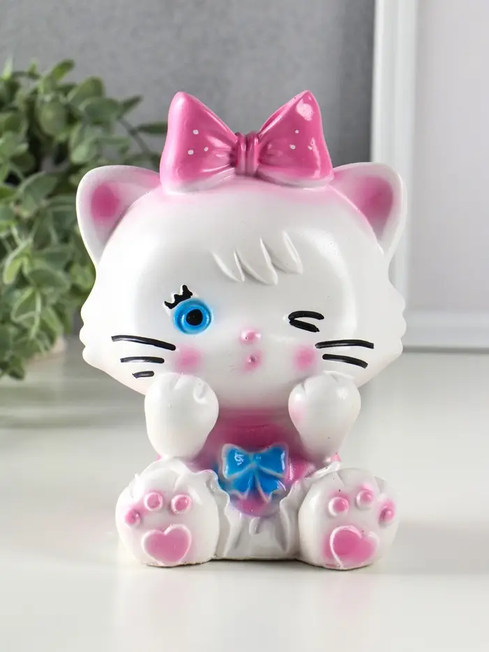 Копилка "Киска с бантом розовым" 17,5х12,5х11,5 см