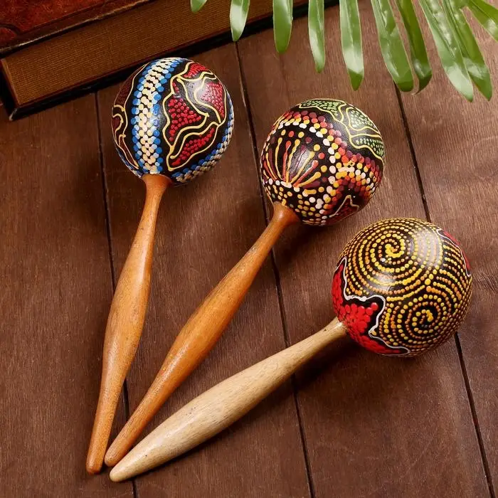 Сувенирный музыкальный инструмент "Маракас с 5 шариками" 10х27х10 см