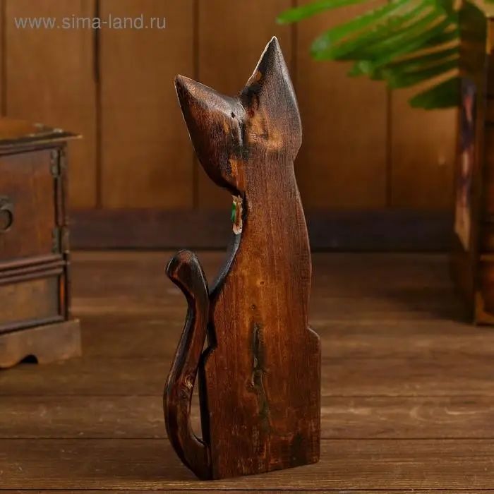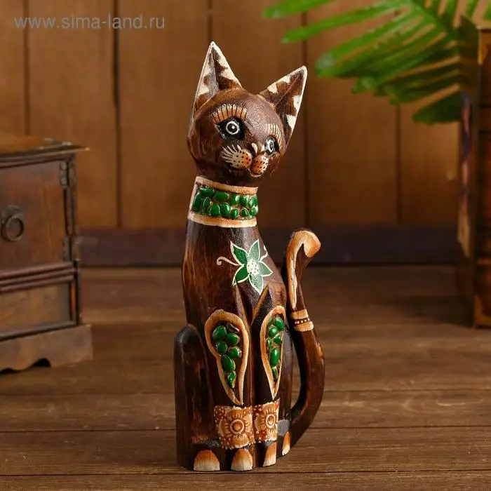 Интерьерный сувенир "Кошка с зелёным цветком" 30 см