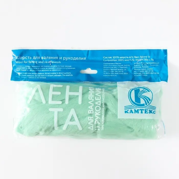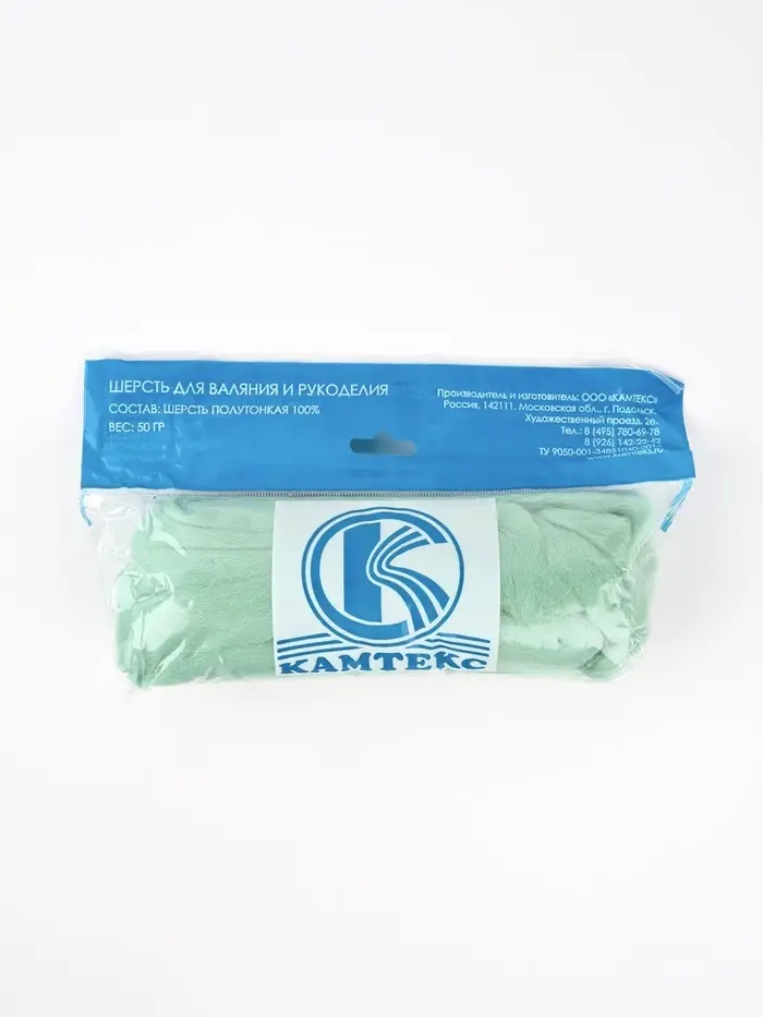 Шерсть для валяния 100% полутонкая шерсть 50 гр (107 ментол)
