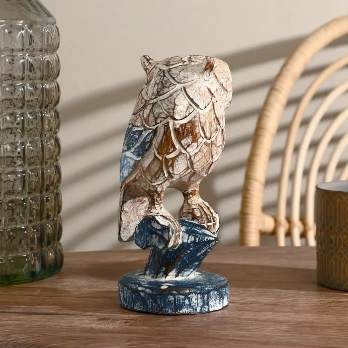 Сувенир дерево "Сова на ветке" синяя 23 см