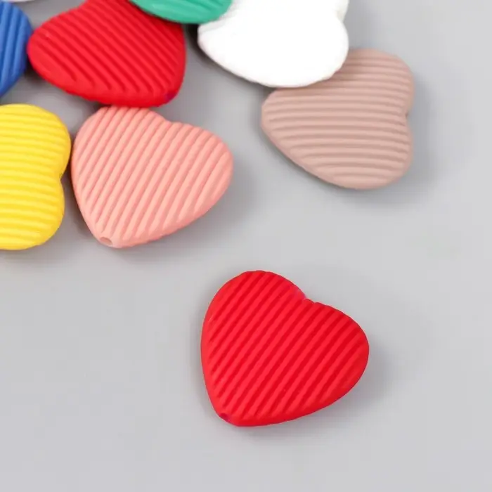 Набор бусин для рукоделия и плетения «Арт Узор. Ребристые сердца», 10 шт., акрил, 0.6×2.4×2.2 см, МИКС