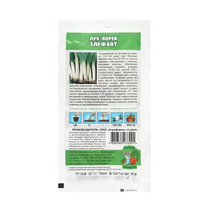 Семена Лук Порей "Сибирский Гигант", 1 гр.
