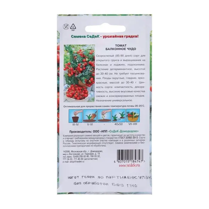 Семена Томат "Балконное чудо", цв/п, детерминантный,низкорослый, 0,1 г