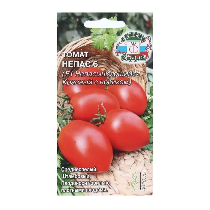 Среднеспелый (110-115 дней) гибрид для открытого грунта и пленочных укрытий. Растение штамбовое, высотой до 60-70 см. Не требует обязательного пасынкования. Формирует кисти с 5-6 плодами. Плоды овальные с «носиком», ярко-красные, массой 70-90 г, плотные, с высоким содержанием сухого вещества, отличного вкуса, не растрескиваются. Урожайность 7,5-8,0 кг/м2. Ценность гибрида: устойчивость к комплексу болезней, жаростойкость, обильное плодоношение, отличная транспортабельность и сохранность плодов. Рекомендуется для свежего употребления, цельноплодного консервирования и засола.