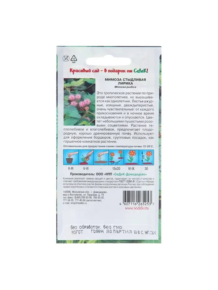 Семена цветов Мимоза "Лирика", стыдливая, розовая, Евро, 0,1 г