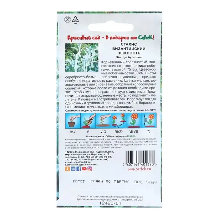 Корневищный травянистый многолетник с зимующими стелющимися и укореняющимися побегами. Цветоносные побеги высотой до 30 см. Листья продолговато-эллиптические, беловойлочно-опушённые, что придает им особую декоративность. Цветки мелкие, розово-лиловые или сиреневые, собранны в колосовидные соцветия. Цветущие, возвышающиеся над ковриком побеги, следует срезать, чтобы лучше и быстрее развивались листоносные. Предпочитает открытые солнечные места, но мирится и с полутенью. К почвам малотребователен. Используют для устройства ковровых клумб, бордюров, на каменистых участках, в миксбордерах, а листья еще и для цветочной аранжировки.