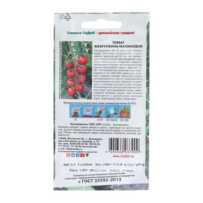 Семена Томат "Жемчужина Малиновая", 0,2 г