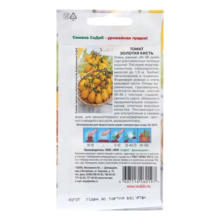 Семена Томат "Золотая кисть", 0,2 г