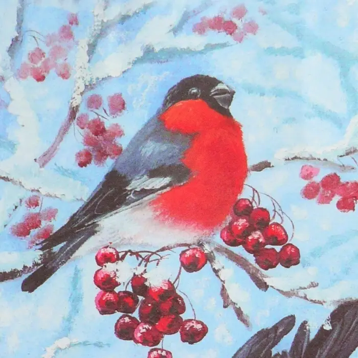 Пакет бумажный подарочный новогодний крафт «Снегири» 16×12×6 см