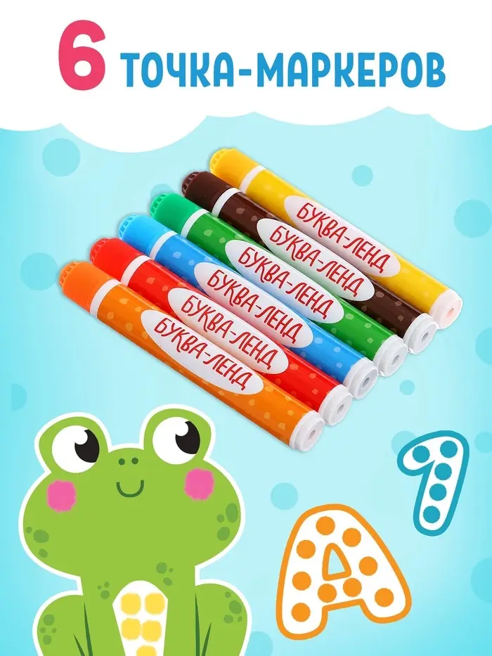 - Комплектуется 6 яркими точка-маркерами для удобного рисования.