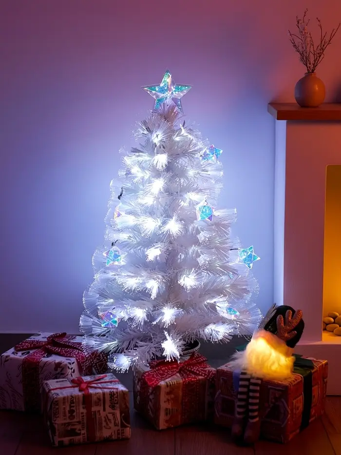 Ёлка фиброоптическая «Белоснежная» 90 см, d нижнего яруса 45 см, 8 веток, 8 режимов