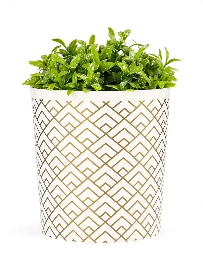Горшок 1,6л d14см h15,5см пластик белый "Золотое напыление" 3