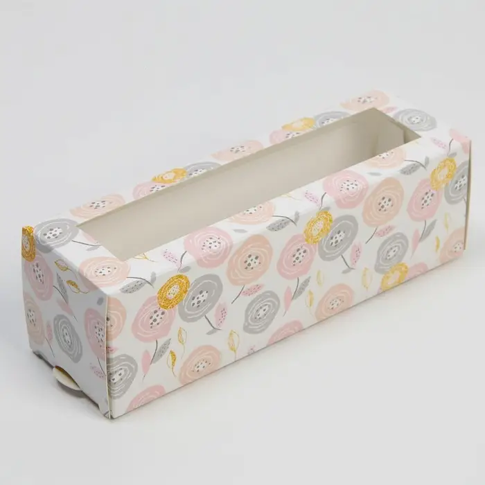 Коробка для макарун, кондитерская упаковка «Цветочки», 5.5 х 18 х 5.5 см