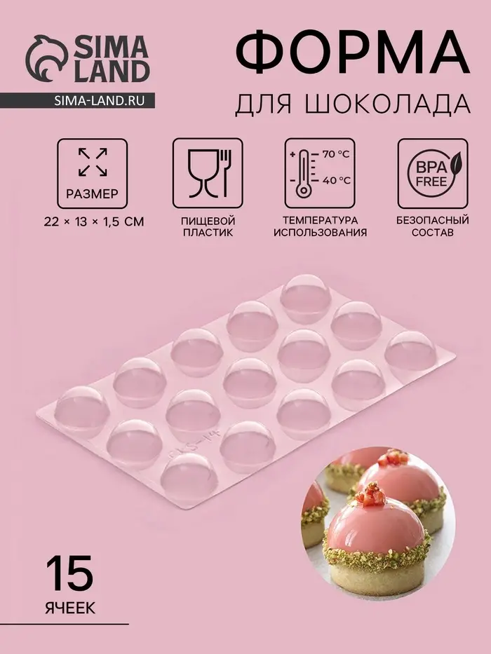 Форма для шоколада и конфет «Полусфера», 22×13 см, 15 ячеек, d=3 см, прозрачная